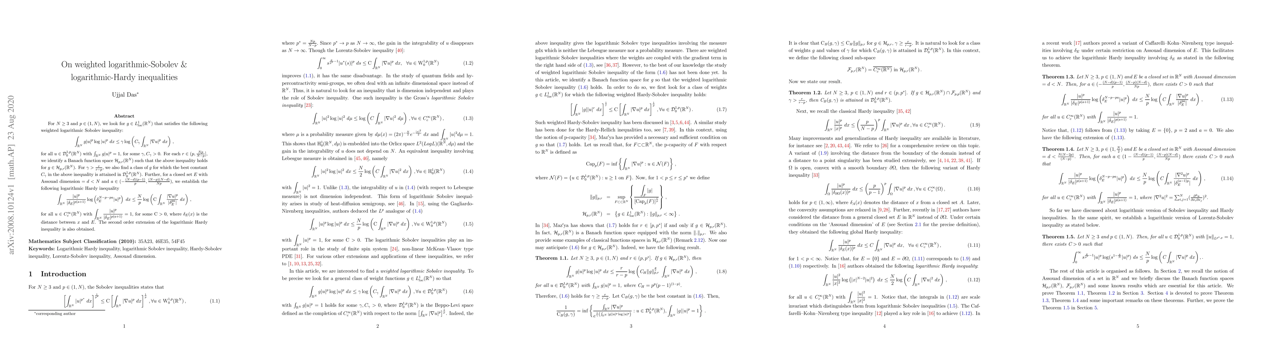 Researchers develop logarithmic Sobolev and Hardy inequalities for specific function spaces, providing a framework for understanding relationships between function norms and derivatives.