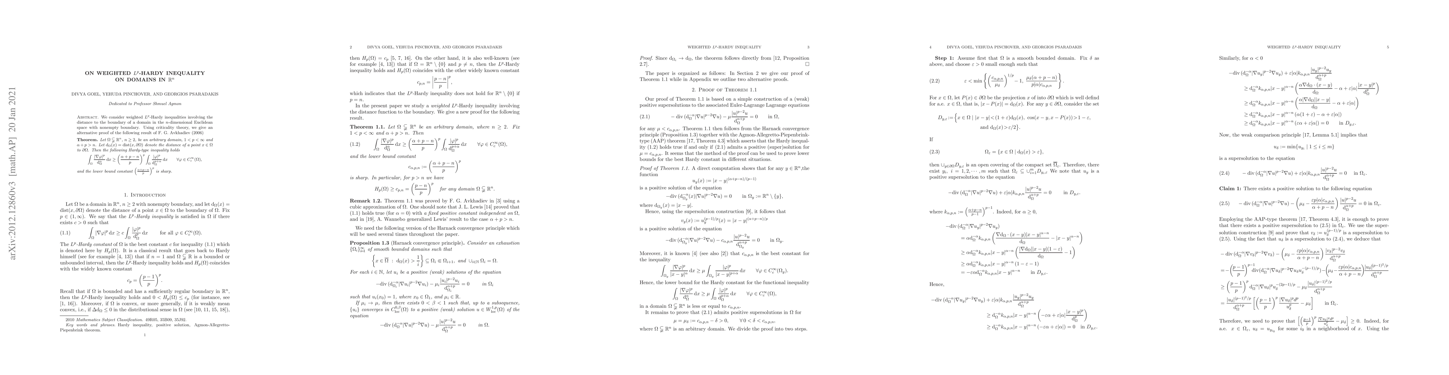 n$. Let $\mathrm{d}_\Omega(x) =\mathrm{dist}(x,\partial \Omega )$ denote the distance of a point $x\in \Omega$ to $\partial \Omega$. Then the following Hardy-type inequality holds $$ \int_{\Omega }\frac{|\nabla \varphi |^p}{\mathrm{d}_\Omega^{\alpha}}\,\mathrm{d}x \geq \left( \frac{\alpha +p-n}{p}\right)^p \int_{\Omega }\frac{|\varphi|^p}{\mathrm{d}_\Omega^{p+\alpha}}\,\mathrm{d}x \qquad \forall \varphi\in C^{\infty }_c(\Omega),$$ and the lower bound constant $\left( \frac{\alpha +p-n}{p}\right)^p$ is sharp.