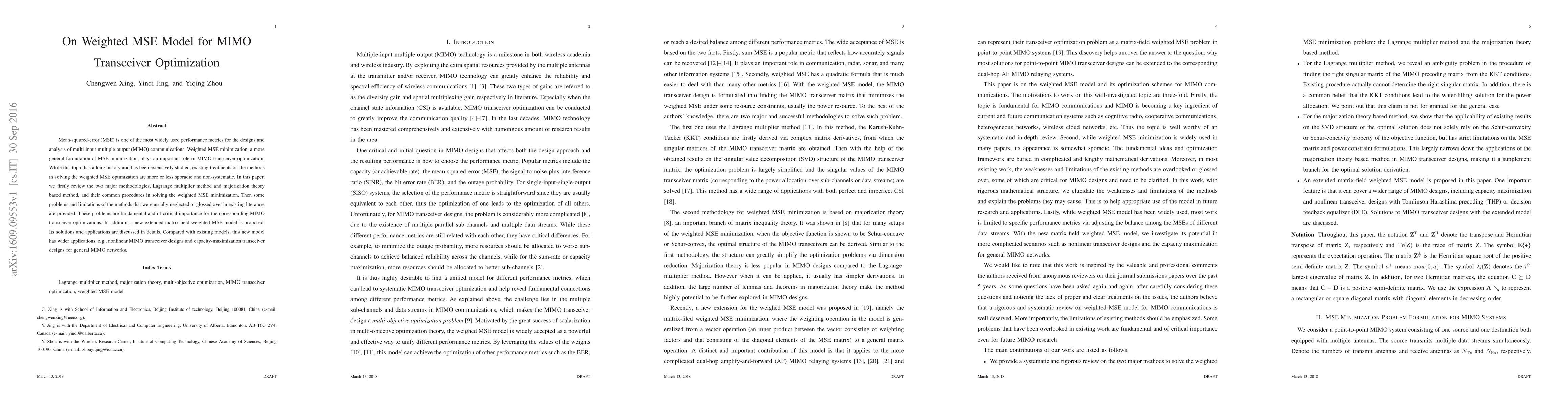 This paper reviews two major methodologies for solving weighted MSE minimization in MIMO transceiver optimization, highlighting their limitations and proposing a new extended matrix-field weighted MSE model with broader applications, including nonlinear MIMO designs and capacity-maximization for general MIMO networks.