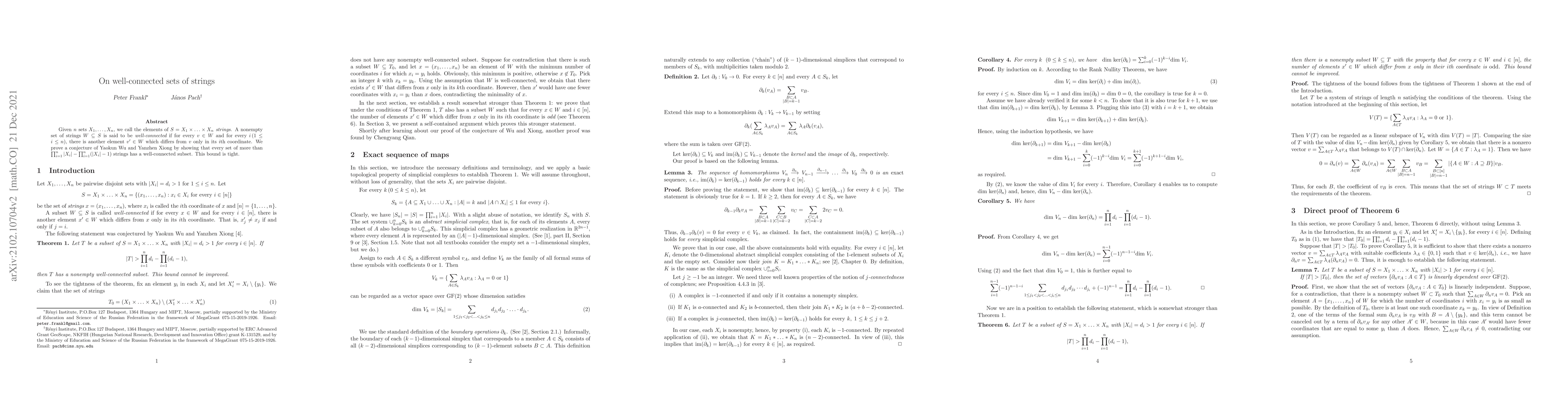 Researchers prove that a set of strings has a well-connected subset if its size exceeds a certain threshold, which is tightly bounded by the product of the sizes of the individual sets minus one.