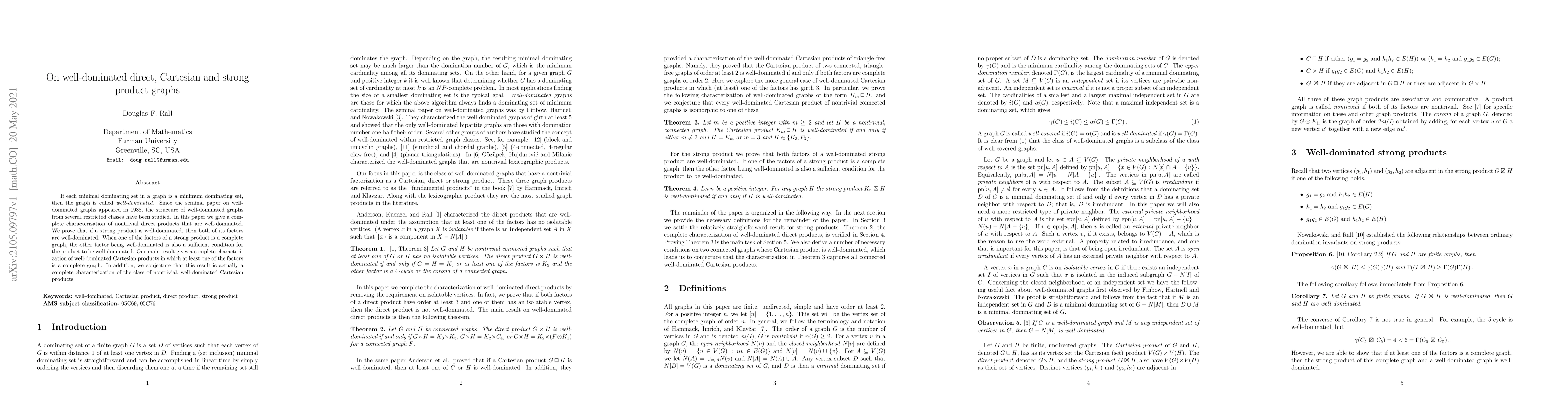 This paper provides a complete characterization of well-dominated direct and Cartesian product graphs, proving that strong products are well-dominated if both factors are, and that well-dominated Cartesian products with at least one complete graph factor are fully characterized. The authors conjecture their findings extend to all nontrivial well-dominated Cartesian products.