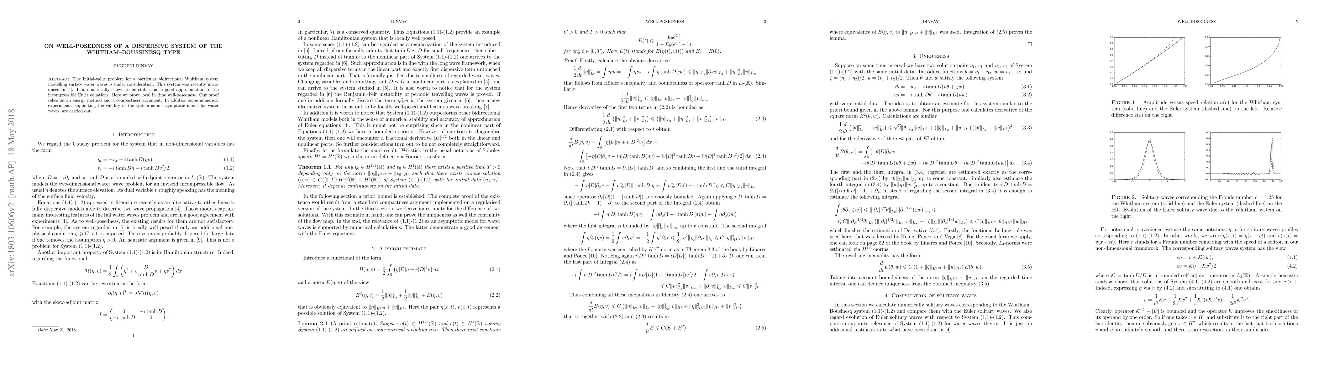 Researchers prove local in time well-posedness for a dispersive system modeling surface water waves, demonstrating stability and accuracy against the incompressible Euler equations.