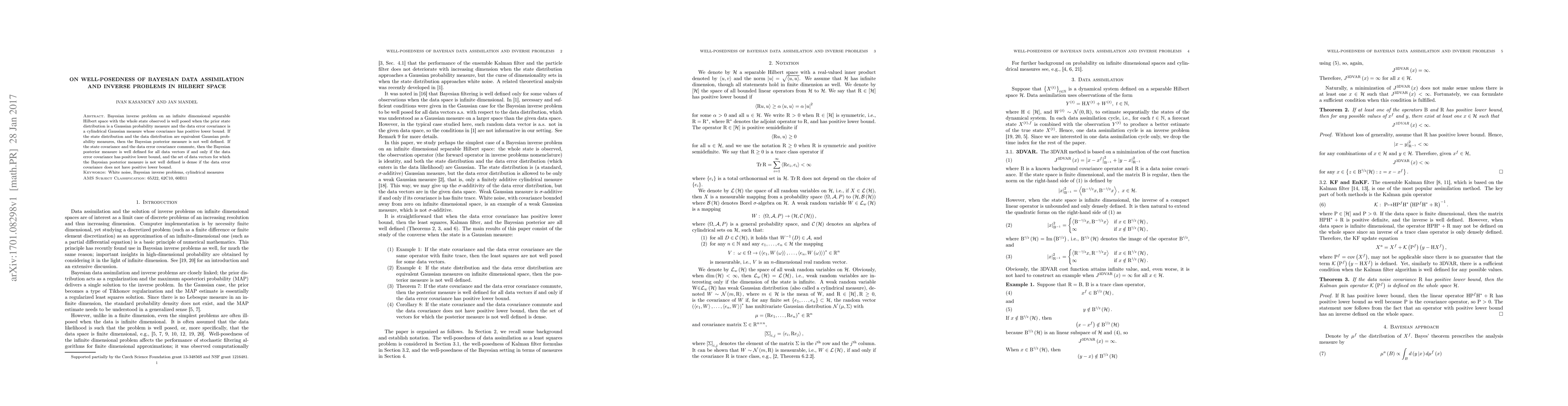 The paper investigates well-posedness of Bayesian data assimilation and inverse problems in Hilbert space, finding that the process is well-defined under certain conditions involving Gaussian probability measures and covariance bounds.