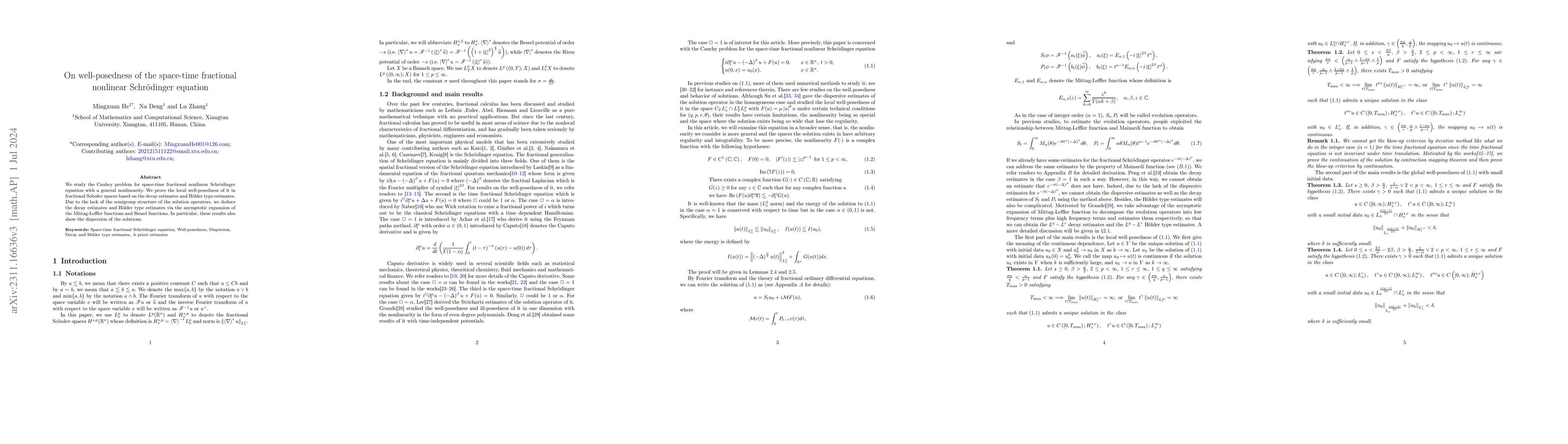 This paper investigates the local well-posedness of the space-time fractional nonlinear Schrödinger equation with general nonlinearity in fractional Sobolev spaces. The authors utilize decay and H\"older type estimates derived from the asymptotic expansion of Mittag-Leffler and Bessel functions, revealing the dispersion properties of solutions.