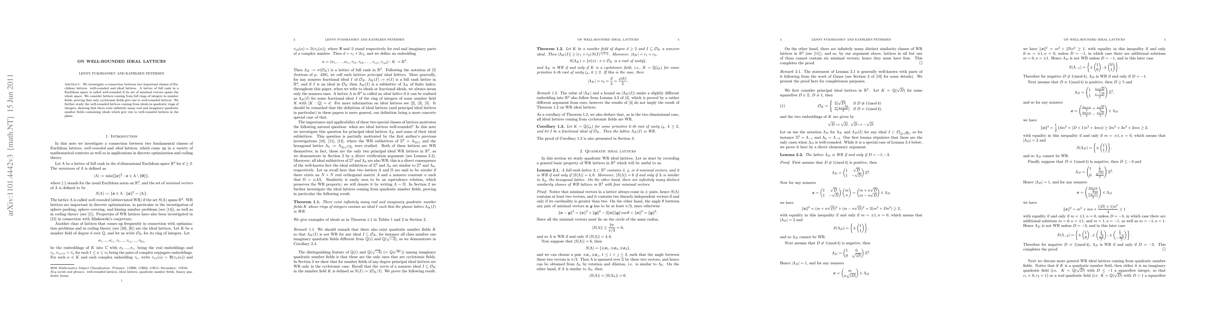 This paper explores the relationship between well-rounded and ideal lattices in Euclidean spaces, proving that only cyclotomic fields yield well-rounded lattices and that there are infinitely many quadratic number fields with ideals generating well-rounded lattices in the plane.