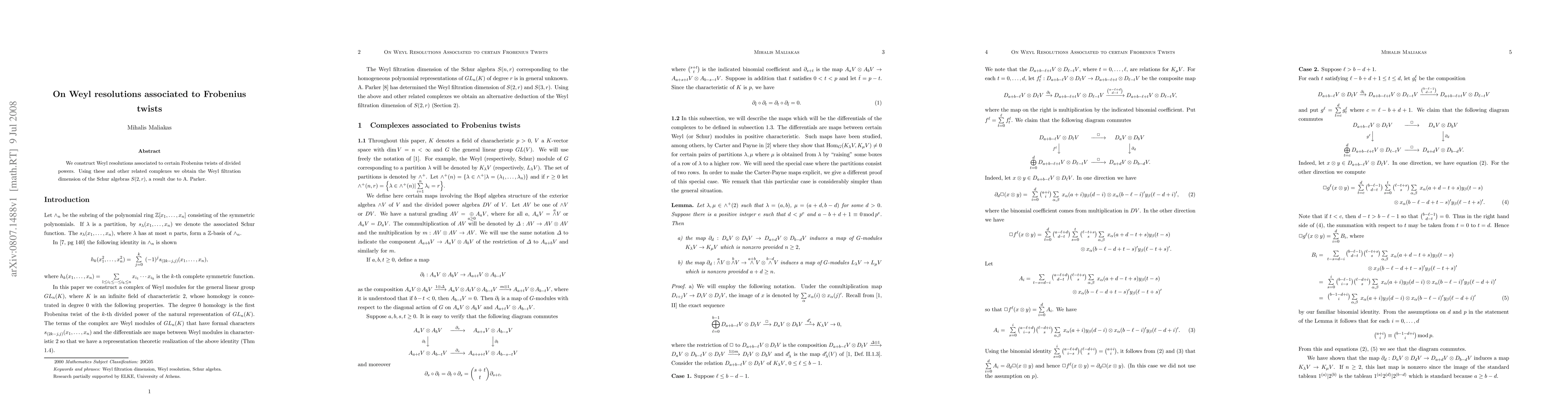 Researchers construct Weyl resolutions associated with Frobenius twists to study Schur algebras, a fundamental concept in representation theory of algebras.