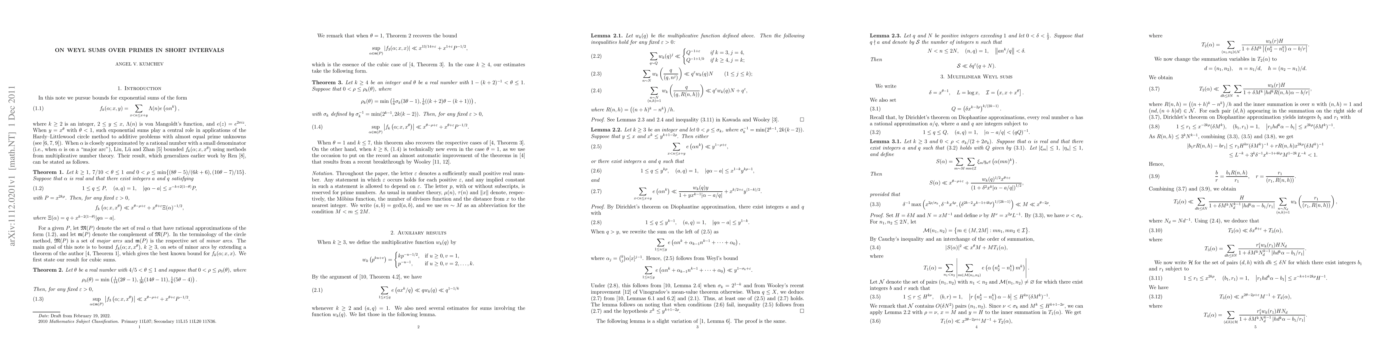 The paper extends earlier estimates for "long" Weyl sums over primes to sums over primes in short intervals, refining understanding of the distribution of primes. The new results provide improved bounds for these prime-related Weyl sums in shorter segments.