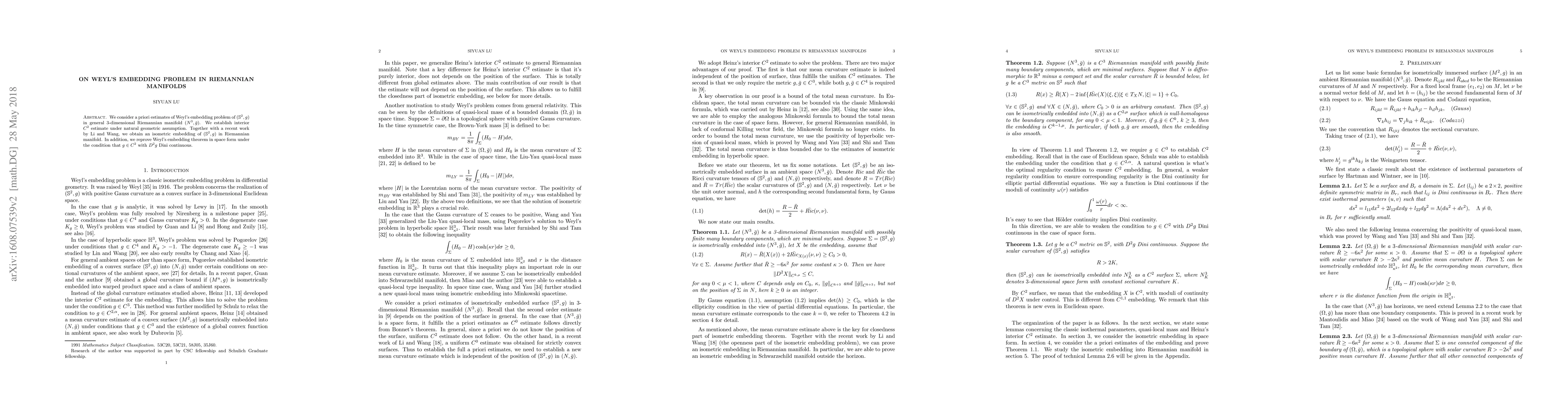 This paper provides interior $C^2$ estimates for Weyl's embedding problem of the 2-sphere in a 3-dimensional Riemannian manifold, leading to an isometric embedding under certain geometric conditions, and reproves Weyl's embedding theorem for space forms with specific smoothness requirements.