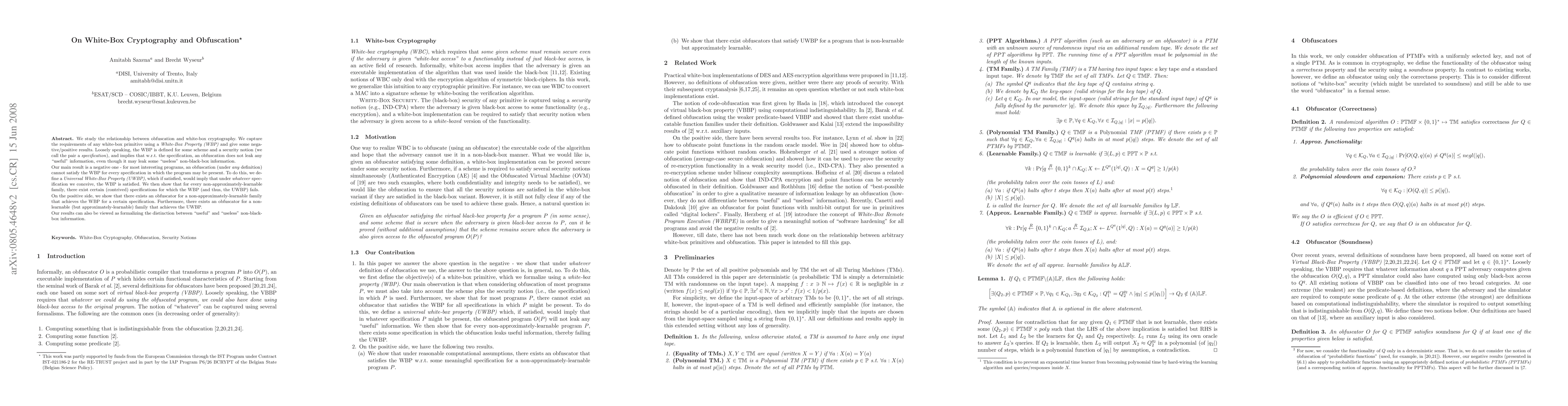 We study the relationship between obfuscation and white-box cryptography. We capture the requirements of any white-box primitive using a \emph{White-Box Property (WBP)} and give some negative/positive results. Loosely speaking, the WBP is defined for some scheme and a security notion (we call the pair a \emph{specification}), and implies that w.r.t. the specification, an obfuscation does not leak any ``useful'' information, even though it may leak some ``useless'' non-black-box information. Our main result is a negative one - for most interesting programs, an obfuscation (under \emph{any} definition) cannot satisfy the WBP for every specification in which the program may be present. To do this, we define a \emph{Universal White-Box Property (UWBP)}, which if satisfied, would imply that under \emph{whatever} specification we conceive, the WBP is satisfied. We then show that for every non-approximately-learnable family, there exist (contrived) specifications for which the WBP (and thus, the UWBP) fails. On the positive side, we show that there exists an obfuscator for a non-approximately-learnable family that achieves the WBP for a certain specification. Furthermore, there exists an obfuscator for a non-learnable (but approximately-learnable) family that achieves the UWBP. Our results can also be viewed as formalizing the distinction between ``useful'' and ``useless'' non-black-box information.