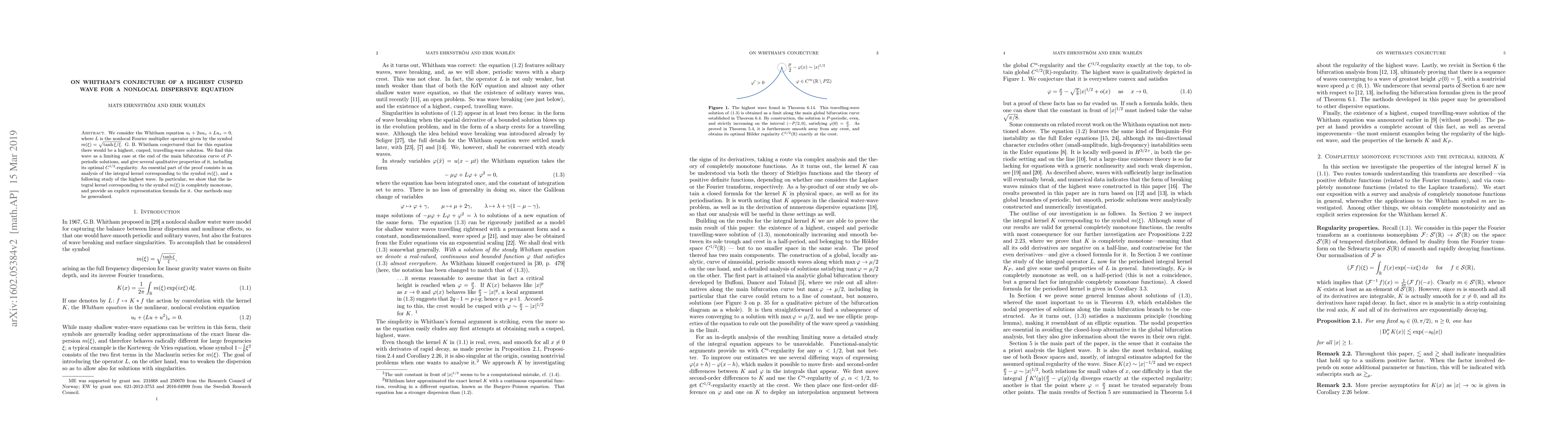 This paper confirms Whitham's conjecture by identifying a highest cusped travelling-wave solution for the nonlocal dispersive Whitham equation. The solution is found as a limiting case and exhibits optimal $C^{1/2}$-regularity, with an essential part of the proof involving the analysis of a completely monotone integral kernel.
