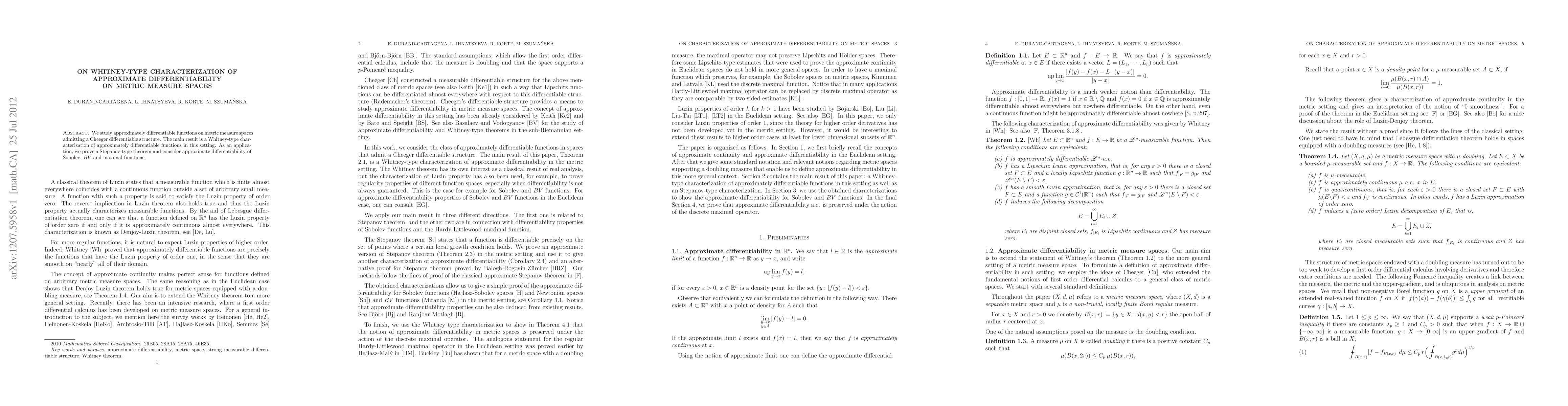 Summary: This paper presents a Whitney-type characterization of approximately differentiable functions on metric measure spaces with Cheeger differentiable structures. It also applies this characterization to prove a Stepanov-type theorem and examines the approximate differentiability of Sobolev, BV, and maximal functions.