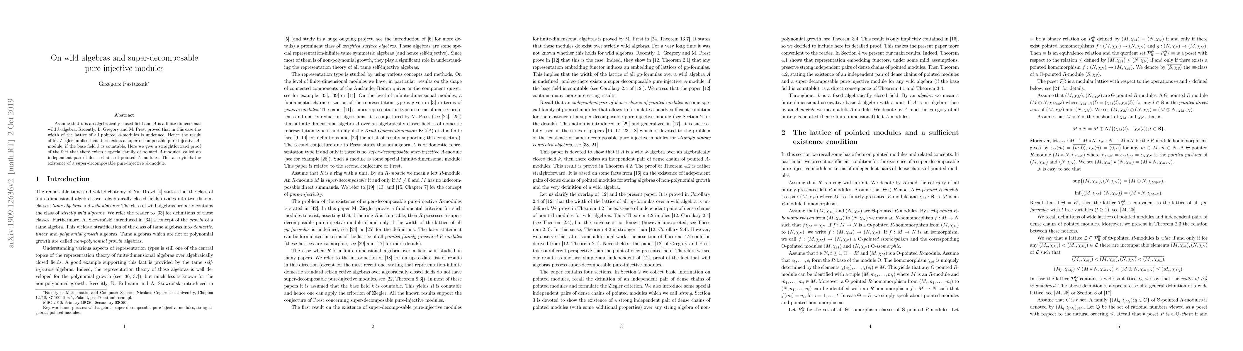 Assume that $k$ is an algebraically closed field and $A$ is a finite-dimensional wild $k$-algebra. Recently, L. Gregory and M. Prest proved that in this case the width of the lattice of all pointed $A$-modules is undefined and hence there exists a super-decomposable pure-injective $A$-module, if the base field $k$ is countable. Here we give a proof of a stronger result. Namely, we show that there exists a special family of pointed $A$-modules, called an independent pair of dense chains of pointed modules. This also yields that the width of the lattice of all pointed $A$-modules is undefined.