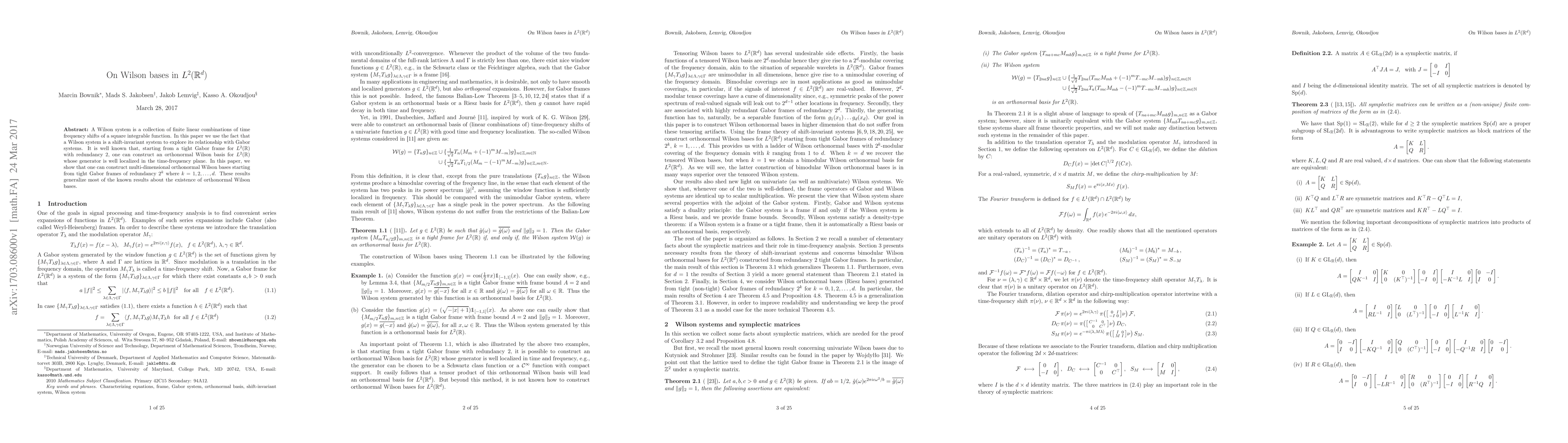 A Wilson system is a collection of finite linear combinations of time frequency shifts of a square integrable function. In this paper we use the fact that a Wilson system is a shift-invariant system to explore its relationship with Gabor systems. It is well known that, starting from a tight Gabor frame for $L^{2}(\mathbb{R})$ with redundancy $2$, one can construct an orthonormal Wilson basis for $L^{2}(\mathbb{R})$ whose generator is well localized in the time-frequency plane. In this paper, we show that one can construct multi-dimensional orthonormal Wilson bases starting from tight Gabor frames of redundancy $2^k$ where $k=1, 2, ..., d$. These results generalize most of the known results about the existence of orthonormal Wilson bases.