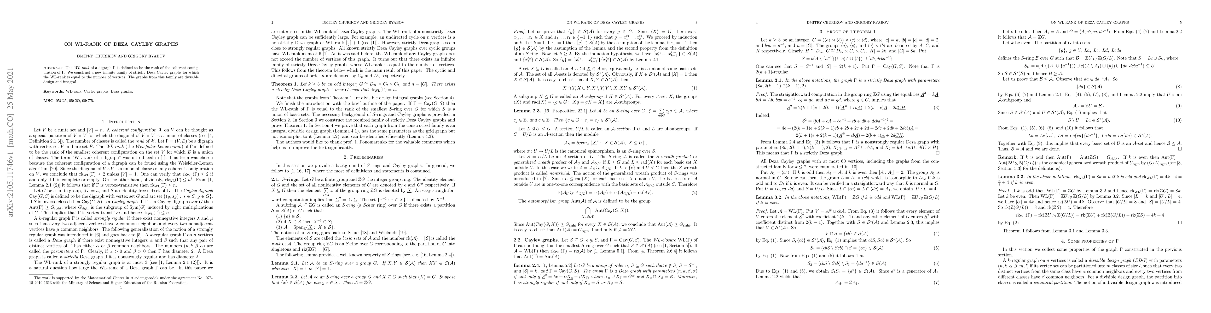 Summary: This paper constructs an infinite family of strictly Deza Cayley graphs where the WL-rank equals the number of vertices. These graphs are shown to be both divisible design and integral.