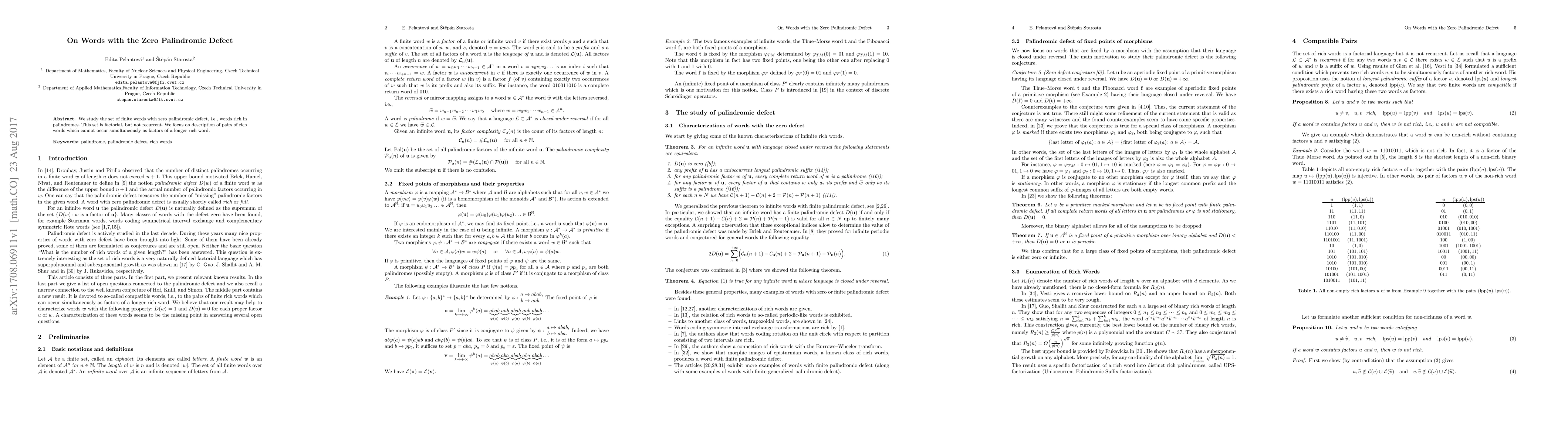 Summary: This paper investigates finite words with zero palindromic defect, characterized by their abundance in palindromes, and explores their factorial nature while noting they are not recurrent. The study also identifies pairs of such words that cannot both be factors of a longer palindrome-rich word.