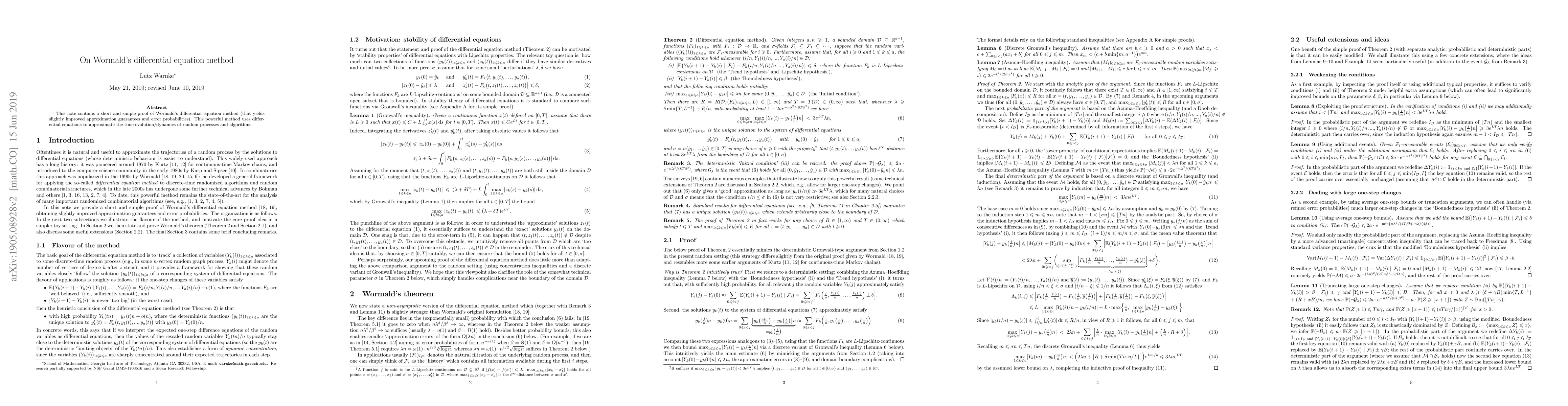 This note contains a short and simple proof of Wormald's differential equation method (that yields slightly improved approximation guarantees and error probabilities). This powerful method uses differential equations to approximate the time-evolution/dynamics of random processes and algorithms.