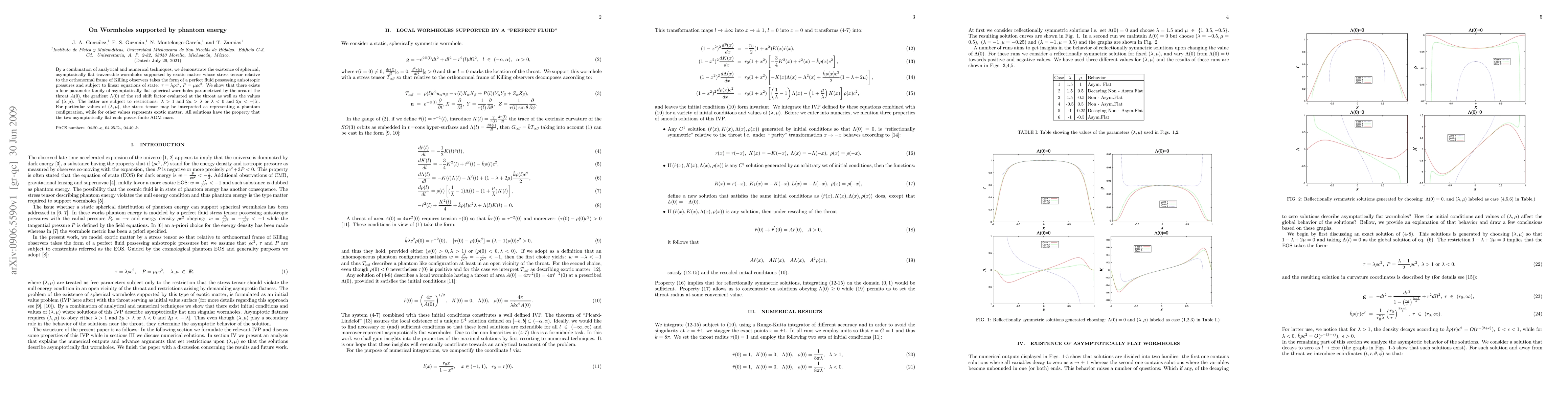 By a combination of analytical and numerical techniques, we demonstrate the existence of spherical, asymptotically flat traversable wormholes supported by exotic matter whose stress tensor relative to the orthonormal frame of Killing observers takes the form of a perfect fluid possessing anisotropic pressures and subject to linear equations of state: $\tau=\lambda\rho c^{2}$, $P=\mu\rho c^{2}$. We show that there exists a four parameter family of asymptotically flat spherical wormholes parametrized by the area of the throat A(0), the gradient $\Lambda(0)$ of the red shift factor evaluated at the throat as well as the values of $(\lambda, \mu)$. The latter are subject to restrictions: $\lambda>1$ and $2\mu>\lambda$ or $\lambda<0$ and $2\mu<-|\lambda|$. For particular values of $(\lambda, \mu)$, the stress tensor may be interpreted as representing a phantom configuration, while for other values represents exotic matter. All solutions have the property that the two asymptotically flat ends posses finite ADM mass.