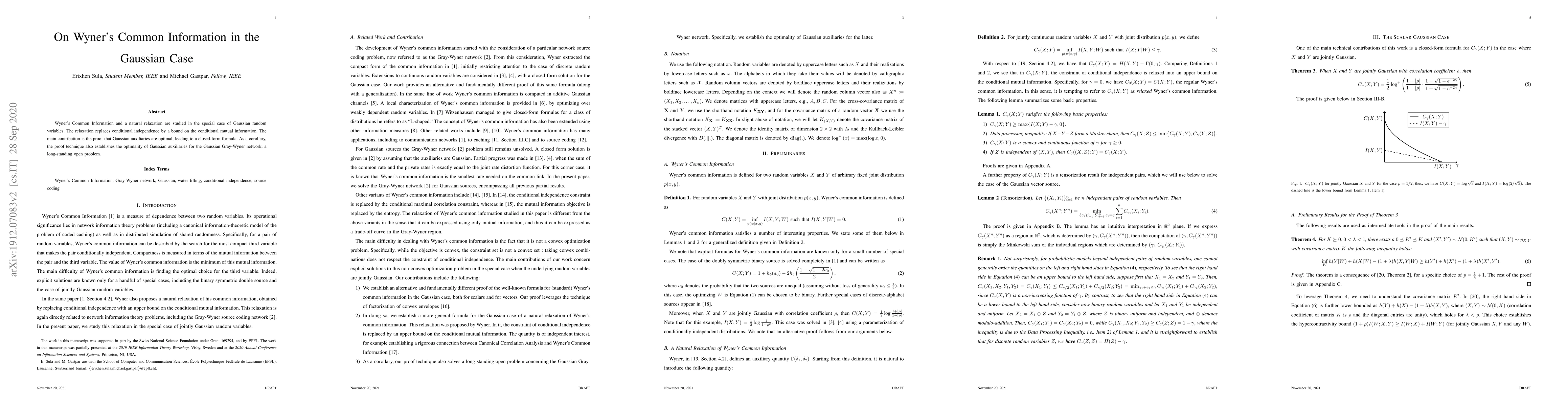 Wyner's Common Information and a natural relaxation are studied in the special case of Gaussian random variables. The relaxation replaces conditional independence by a bound on the conditional mutual information. The main contribution is the proof that Gaussian auxiliaries are optimal, leading to a closed-form formula. As a corollary, the proof technique also establishes the optimality of Gaussian auxiliaries for the Gaussian Gray-Wyner network, a long-standing open problem.