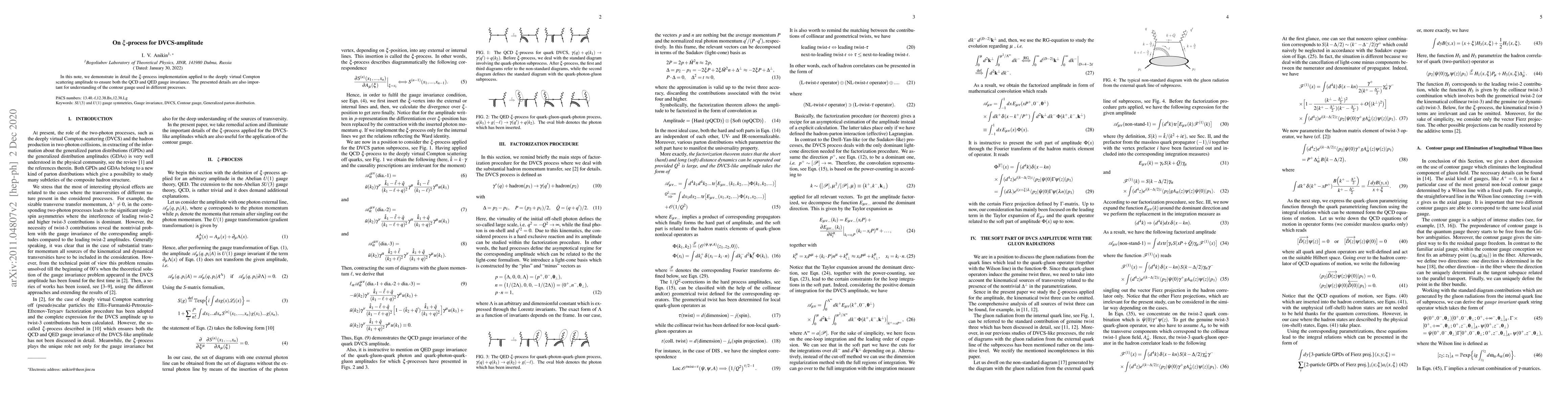 In this note, we demonstrate in detail the $\xi$-process implementation applied to the deeply virtual Compton scattering amplitude to ensure both the QCD and QED gauge invariance. The presented details are also important for understanding of the contour gauge used in different processes.