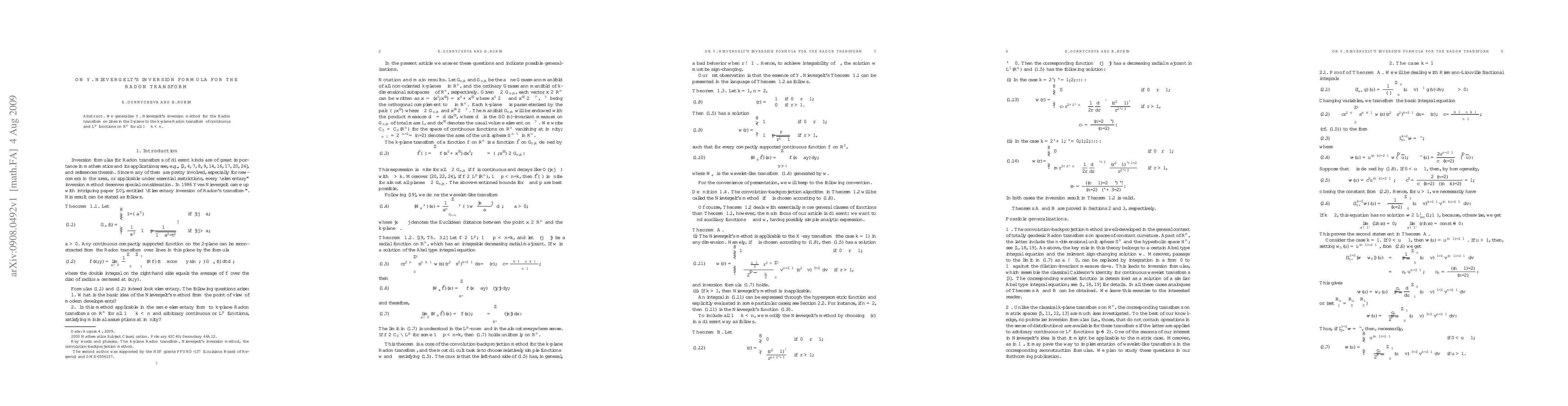We generalize Y. Nievergelt's inversion method for the Radon transform on