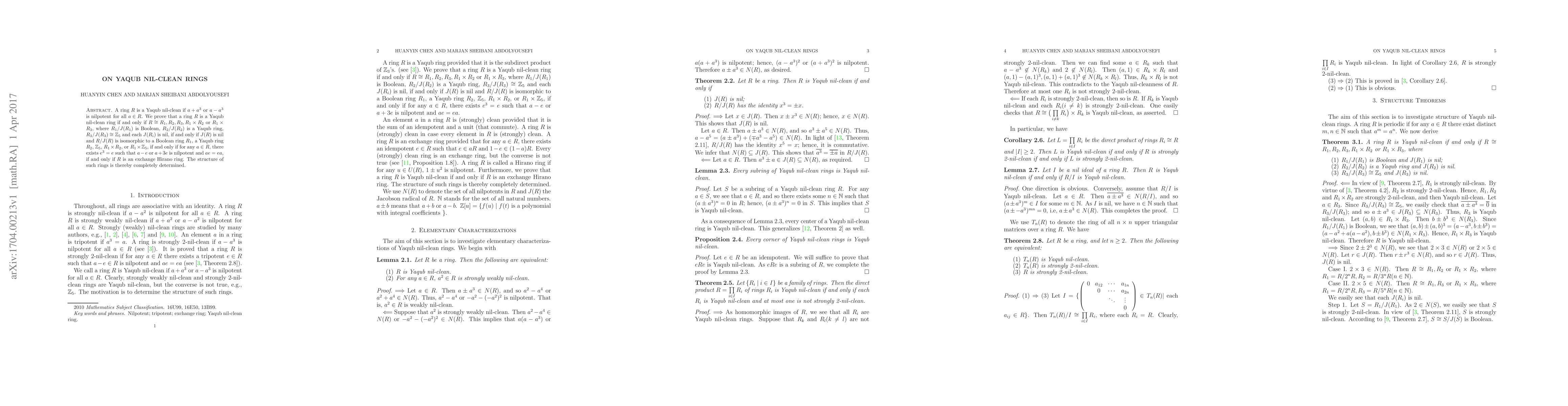 A ring R is Yaqub nil-clean if for any element a in R, a-a^3 or a+a^3 is nilpotent. It is equivalent to the condition that for any a, there exists e such that a-e or a+e^2 is nilpotent and ae=ea.