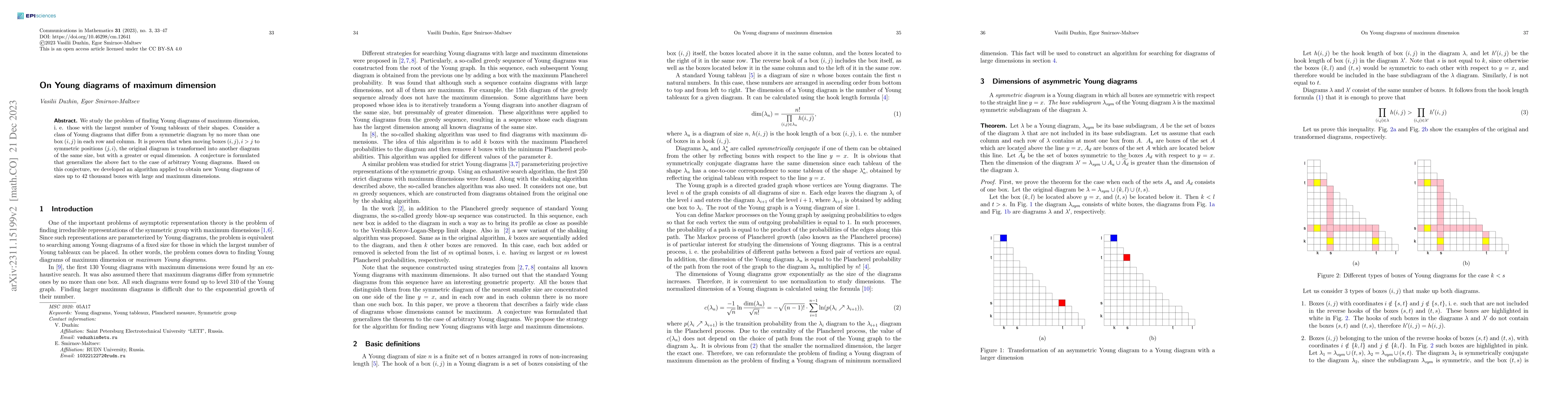 Our research provides new insights into the structure and properties of Young diagrams, particularly those with large and maximum dimensions.