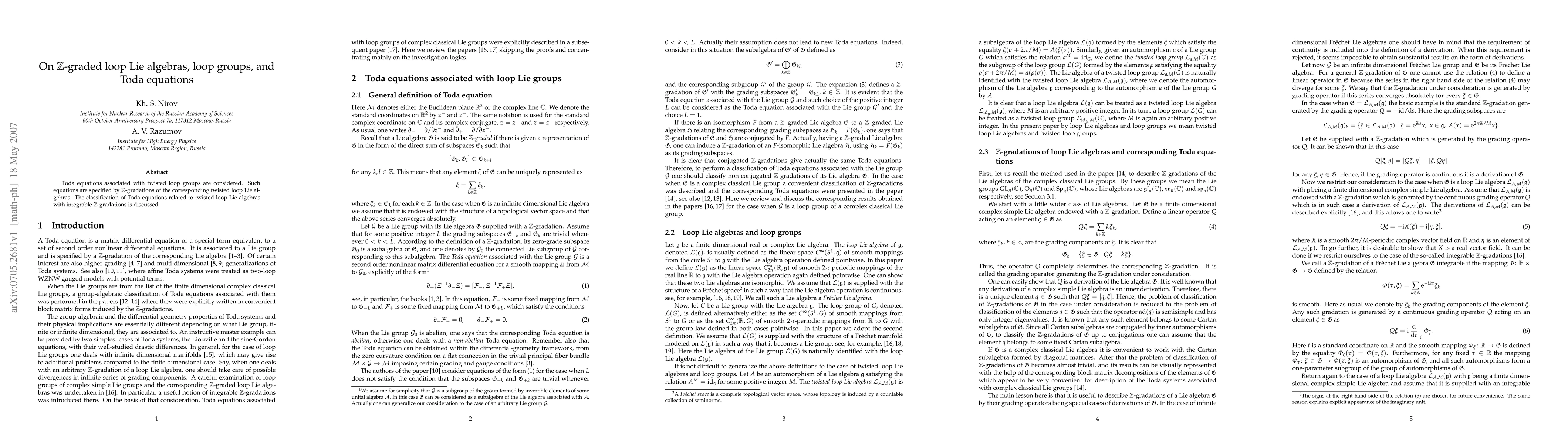 This paper explores Toda equations linked to twisted loop groups, focusing on their classification based on Z-gradations of the corresponding loop Lie algebras. It investigates the integrable Z-gradations of twisted loop Lie algebras and their associated Toda equations.