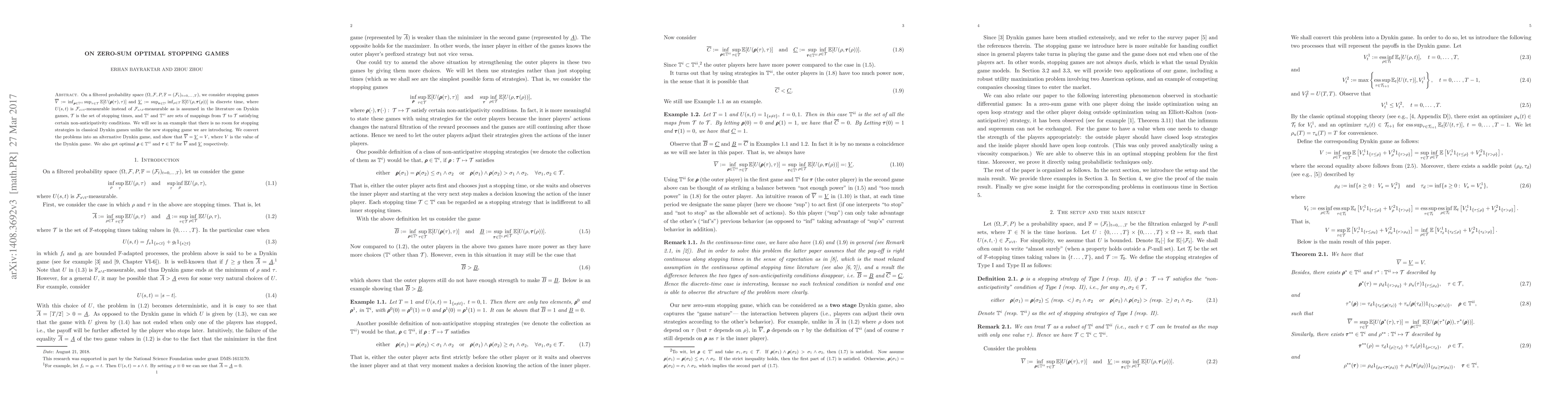 Researchers develop a framework for zero-sum optimal stopping games in discrete time, showing that upper and lower value functions converge to the same value as the underlying Dynkin game.