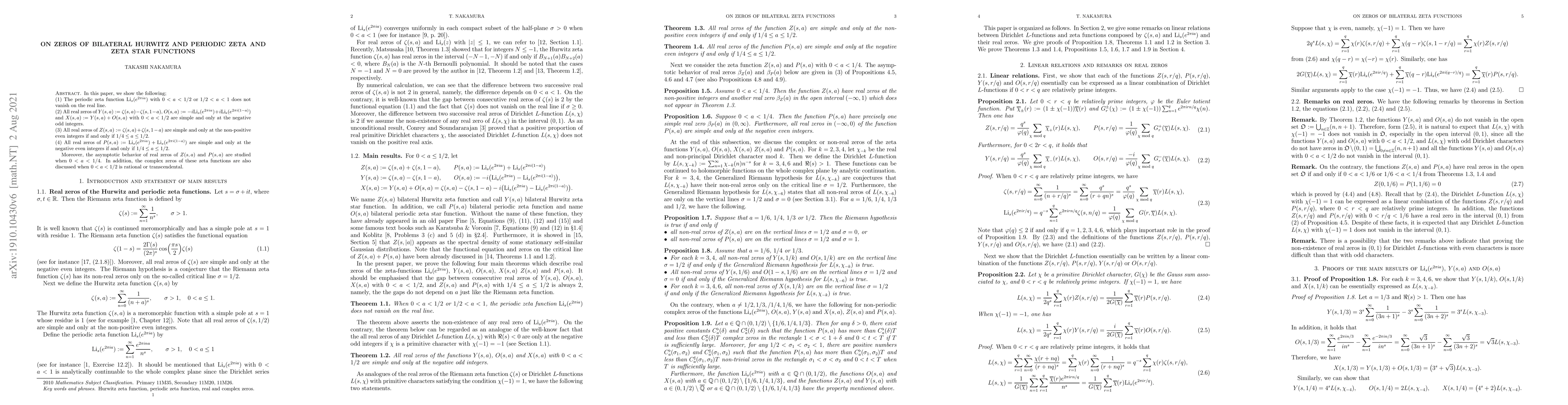 This paper investigates the zeros of various modified zeta functions, demonstrating that periodic zeta functions do not vanish on the real line and identifying the precise locations of real zeros for several functions. Specifically, it confirms that real zeros occur only at negative odd integers for some functions and at non-positive even integers under certain conditions. The study also considers the asymptotic behavior and complex zeros of these functions.