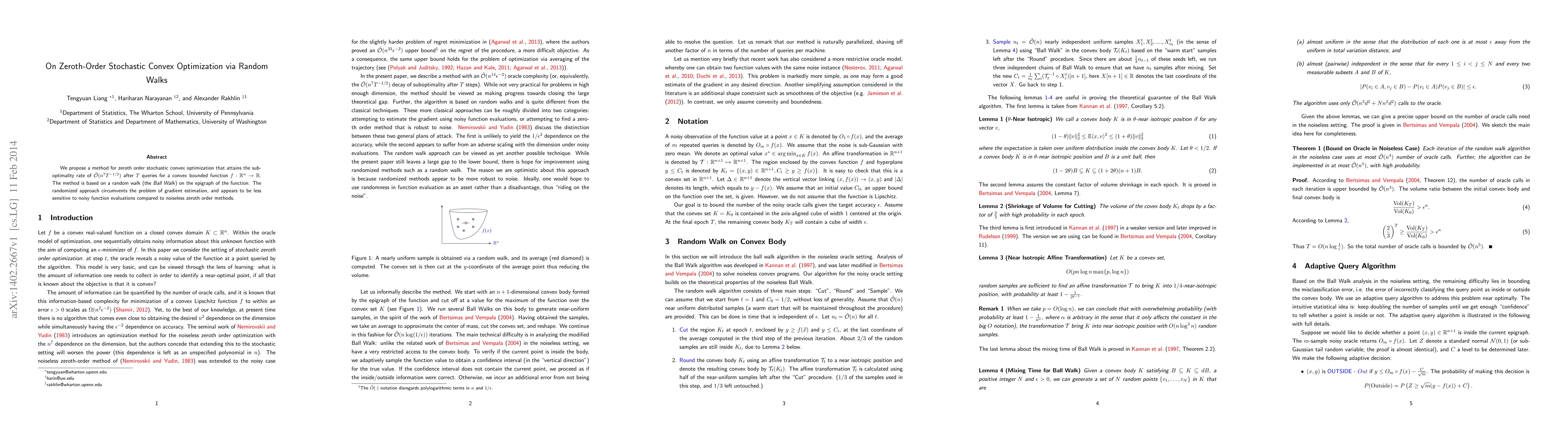 This paper proposes a new method for zeroth-order stochastic convex optimization that uses random walks on the function's epigraph, achieving suboptimality rate of $ ilde{ ext{o}}(n^{7}T^{-1/2})$ with improved robustness to noisy function evaluations.