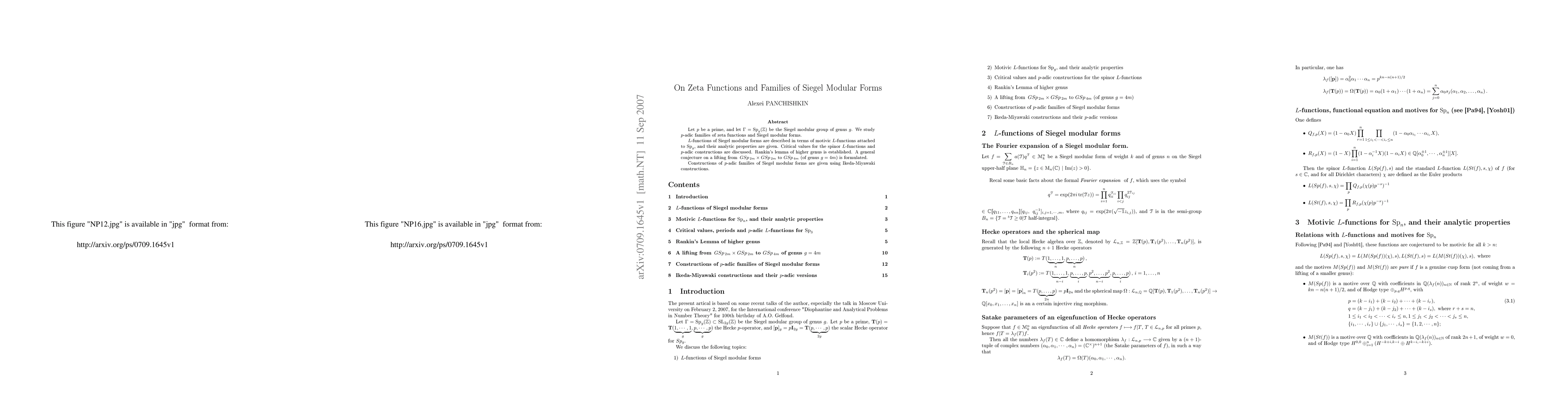 This paper investigates $p$-adic families of zeta functions and Siegel modular forms, describing $L$-functions in terms of motivic $L$-functions, establishing Rankin's lemma for higher genus, and formulating a conjecture on lifting between symplectic groups. It utilizes Ikeda-Miyawaki constructions for $p$-adic Siegel modular forms.