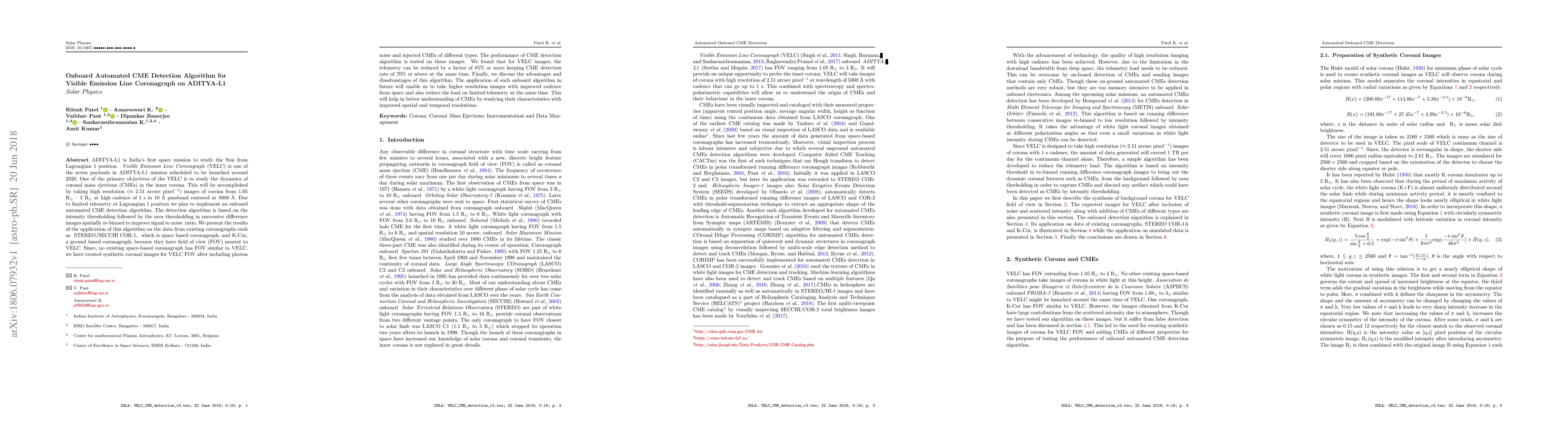 This paper presents an onboard automated CME detection algorithm for the Visible Emission Line Coronagraph (VELC) on India's ADITYA-L1 mission, designed to study coronal mass ejections with high resolution. The algorithm effectively reduces telemetry by 85% while maintaining a 70% CME detection rate, enabling better CME characterization.