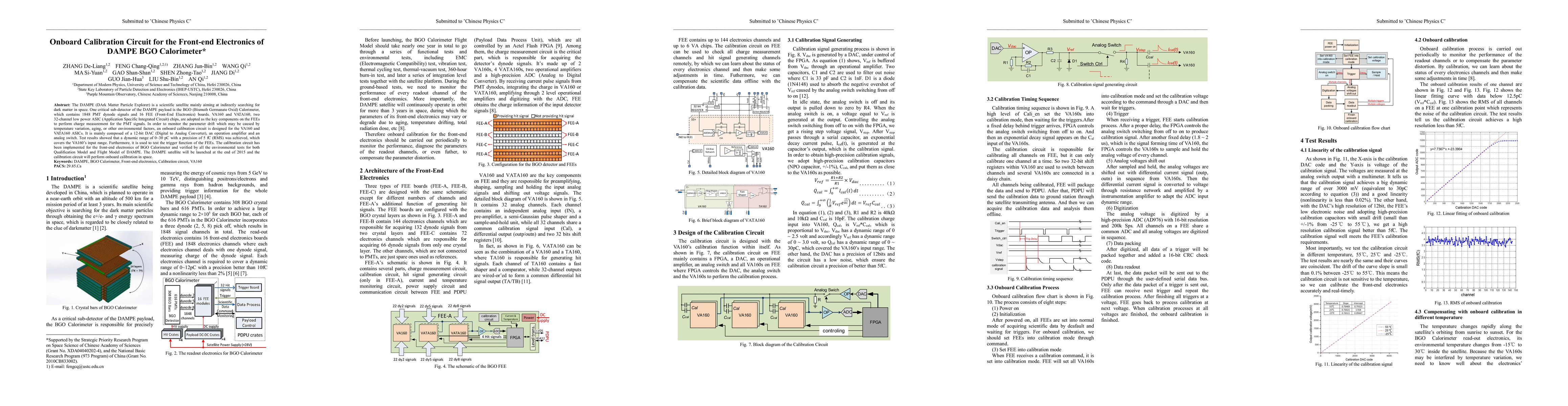 This paper presents an onboard calibration circuit for the front-end electronics of DAMPE BGO Calorimeter, achieving a dynamic range of 0 ~ 30 pC with a precision of 5 fC. The circuit, composed of a 12-bit DAC, an op-amp, and an analog switch, has been verified through environmental tests and will perform onboard calibration for the DAMPE satellite in space.