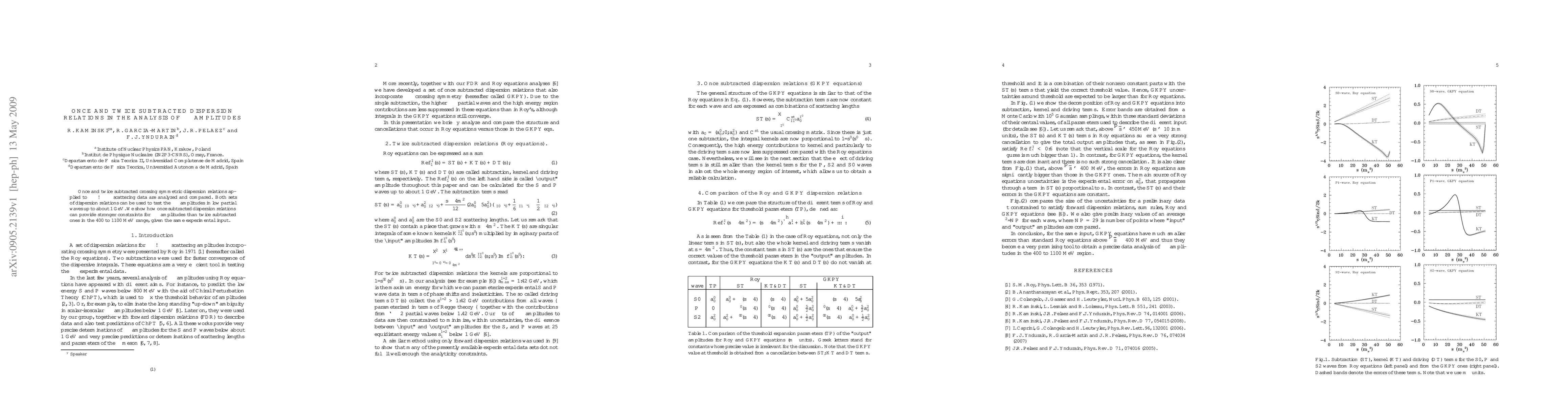 This paper compares once and twice subtracted dispersion relations applied to $\pi\pi \to \pi\pi$ scattering data, showing that once subtracted relations provide stronger constraints for $\pi\pi$ amplitudes in the 400 to 1100 MeV range compared to twice subtracted ones, given the same experimental input.