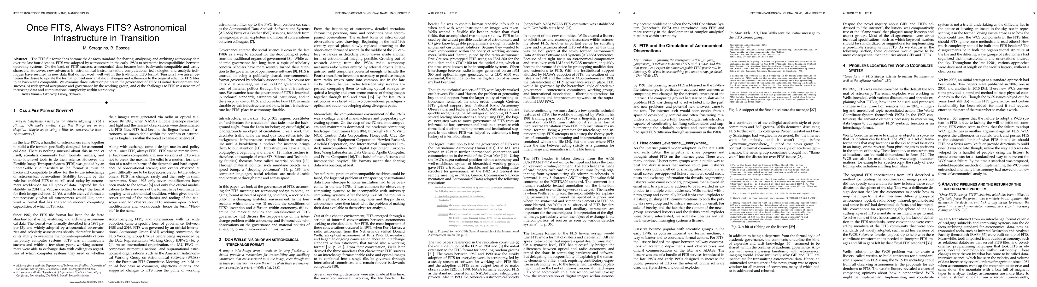 This paper explores the evolution and challenges of the FITS file format in astronomy, highlighting its initial success in promoting data sharing and compatibility, and examining the tensions between maintaining backward compatibility and adapting to new data complexities and computational demands. It investigates three key governance phases of FITS: its development, its adoption, and the current challenges it faces.