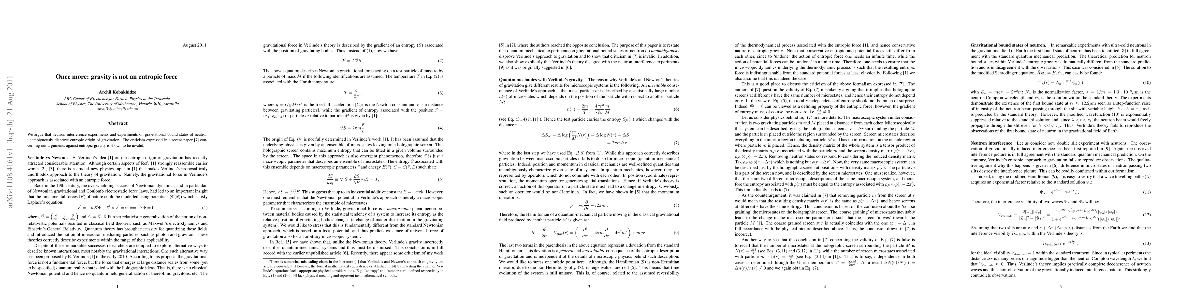 Summary: This paper refutes the entropic origin of gravity using neutron interference experiments and gravitational bound state studies, and counters criticisms of previous arguments against entropic gravity. The findings firmly establish that gravity is not an entropic force.