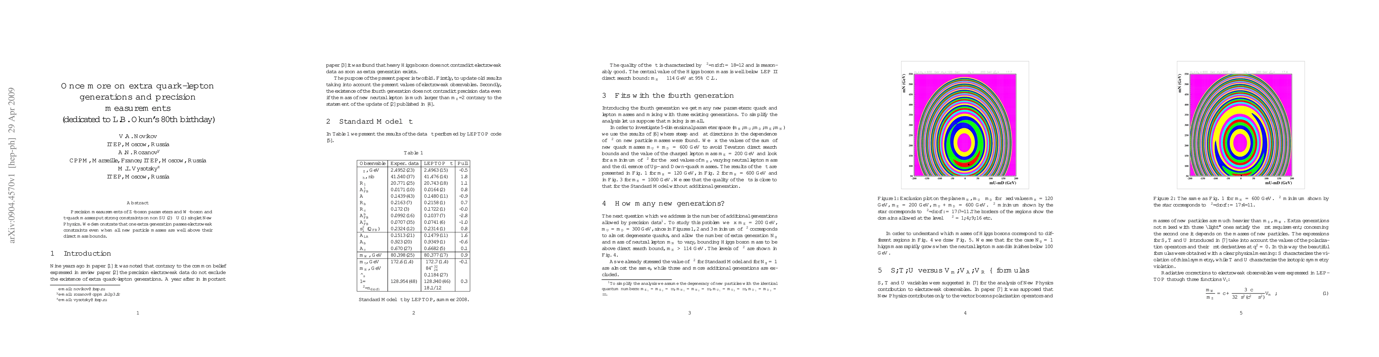 Precision measurements of $Z$-boson parameters and $W$-boson and $t$-quark masses put strong constraints on non $SU(2)\times U(1)$ singlet New Physics. We demonstrate that one extra generation passes electroweak constraints even when all new particle masses are well above their direct mass bounds.