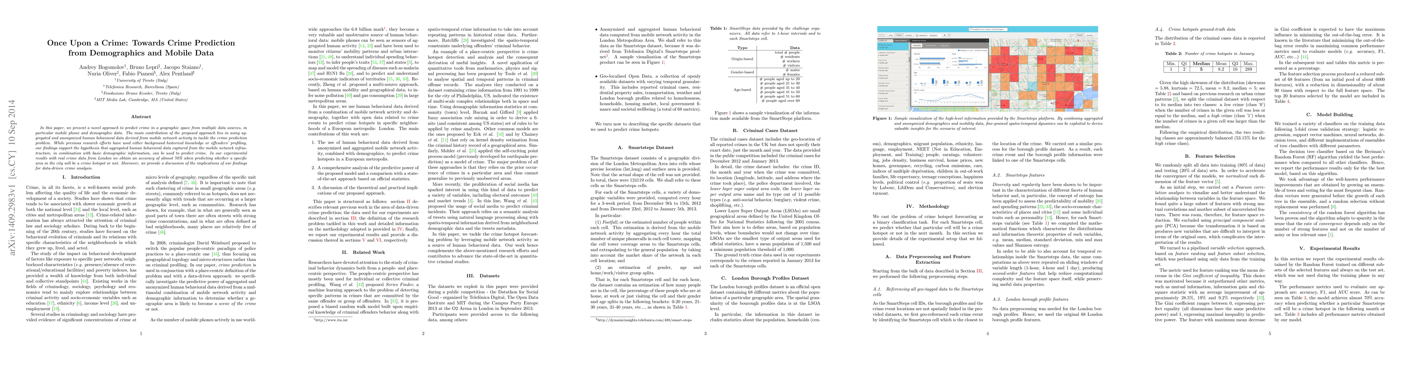 This paper introduces a method to predict crime using anonymized mobile data and demographics, achieving nearly 70% accuracy in identifying crime hotspots in London. The study highlights the potential of aggregated human behavioral data for crime prediction, contrasting with previous methods reliant on historical knowledge or offender profiling.