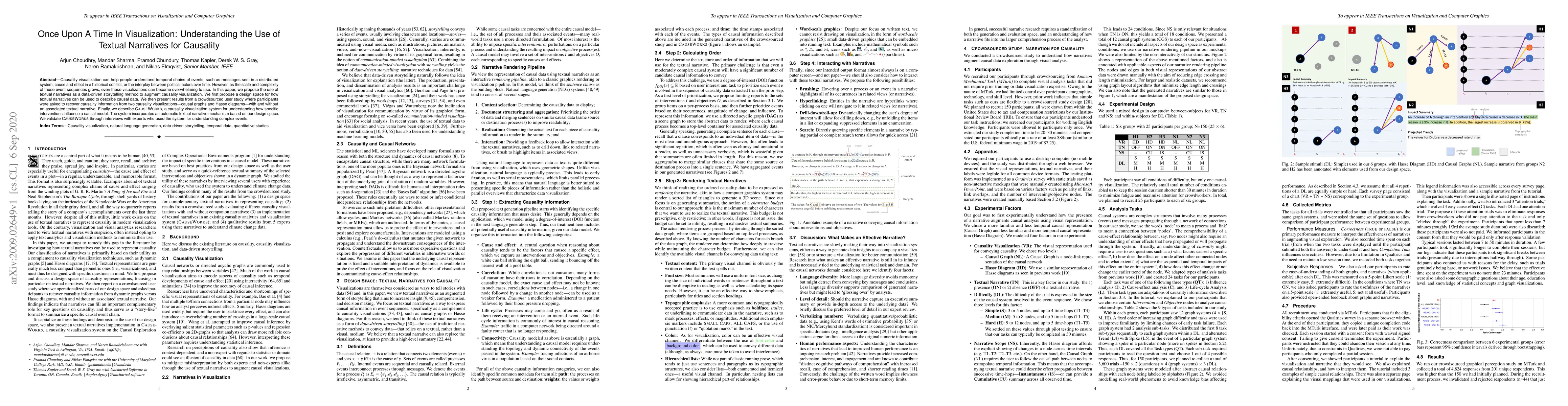 This paper explores augmenting causality visualization with textual narratives to enhance comprehension of complex temporal event sequences. It introduces a design space for integrating narratives and validates the approach through a user study and expert interviews, demonstrating the effectiveness of the proposed system, CAUSEWORKS.