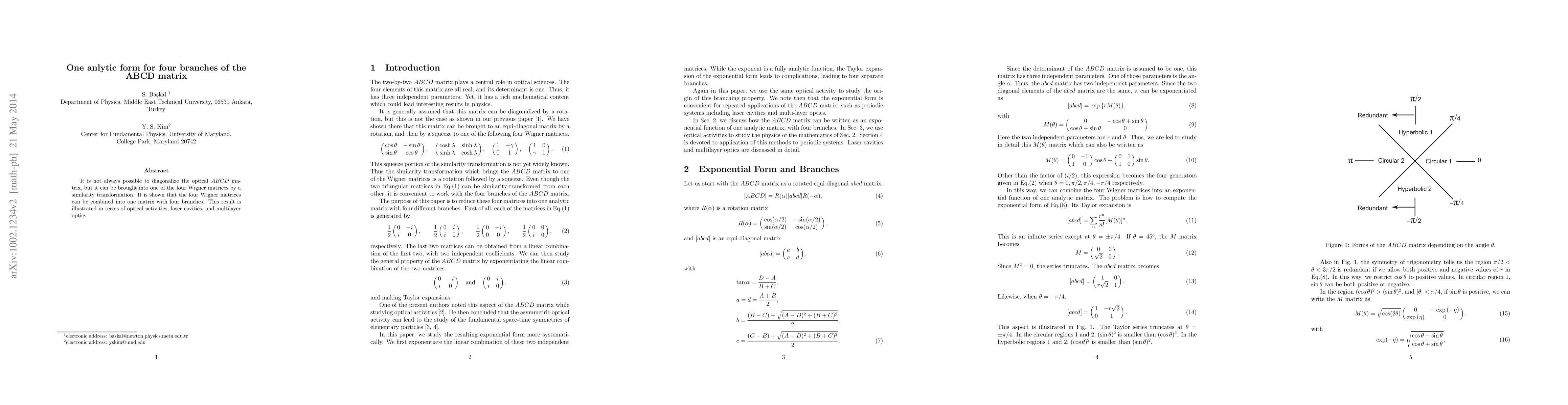This paper demonstrates that the optical ABCD matrix, which cannot always be diagonalized, can be transformed into one matrix with four branches corresponding to four Wigner matrices. This unified matrix is applied to optical activities, laser cavities, and multilayer optics.