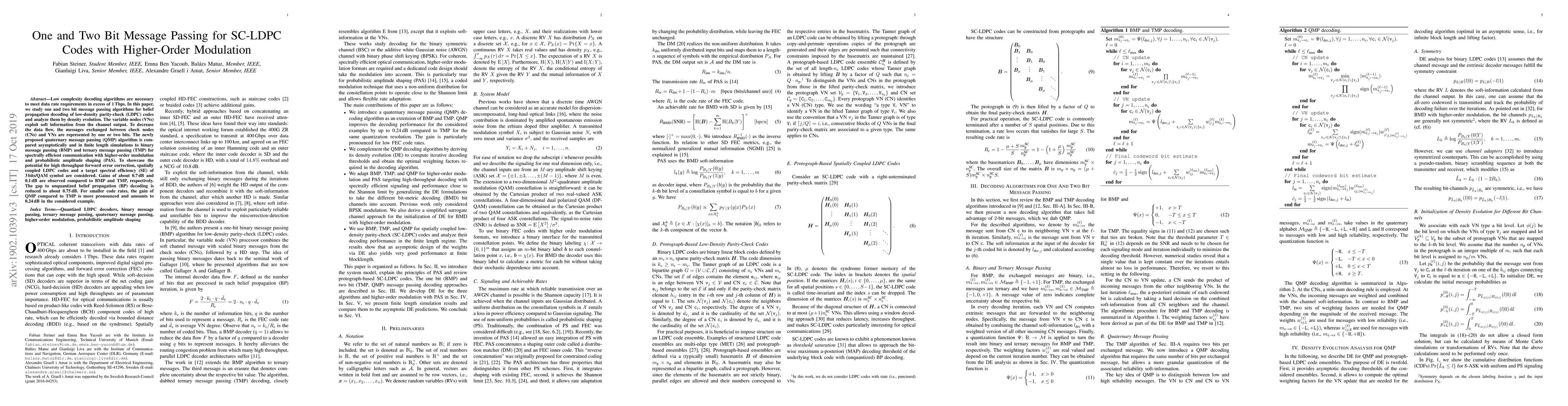 This paper proposes one and two bit message passing algorithms for decoding low-density parity-check (LDPC) codes used with higher-order modulation, achieving gains of about 0.7 dB over binary message passing and 0.1 dB over ternary message passing, while reducing the data flow and improving spectral efficiency.