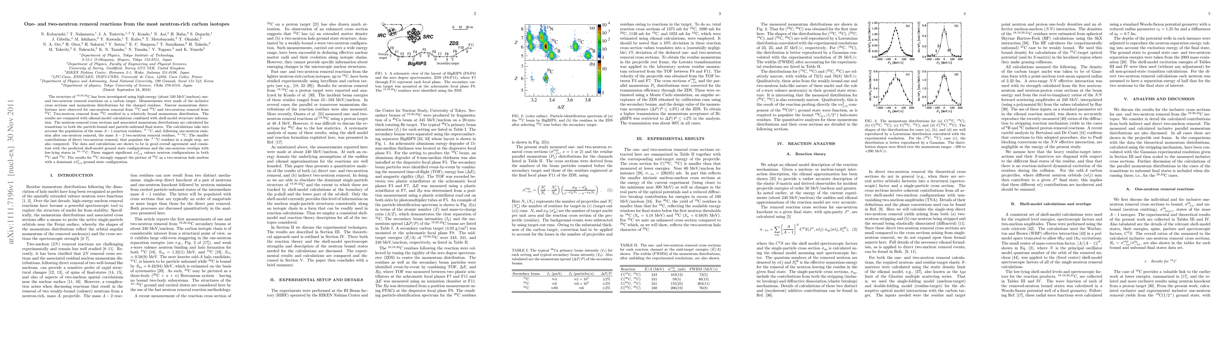 This study investigates the structure of neutron-rich carbon isotopes $^{19,20,22}$C via high-energy one- and two-neutron removal reactions, revealing narrow momentum distributions for one-neutron removal from $^{19}$C and $^{20}$C, and two-neutron removal from $^{22}$C. The findings align with shell-model predictions and support $^{22}$C as a two-neutron halo nucleus with a dominant $\nu{s}_{1/2}^2$ configuration.