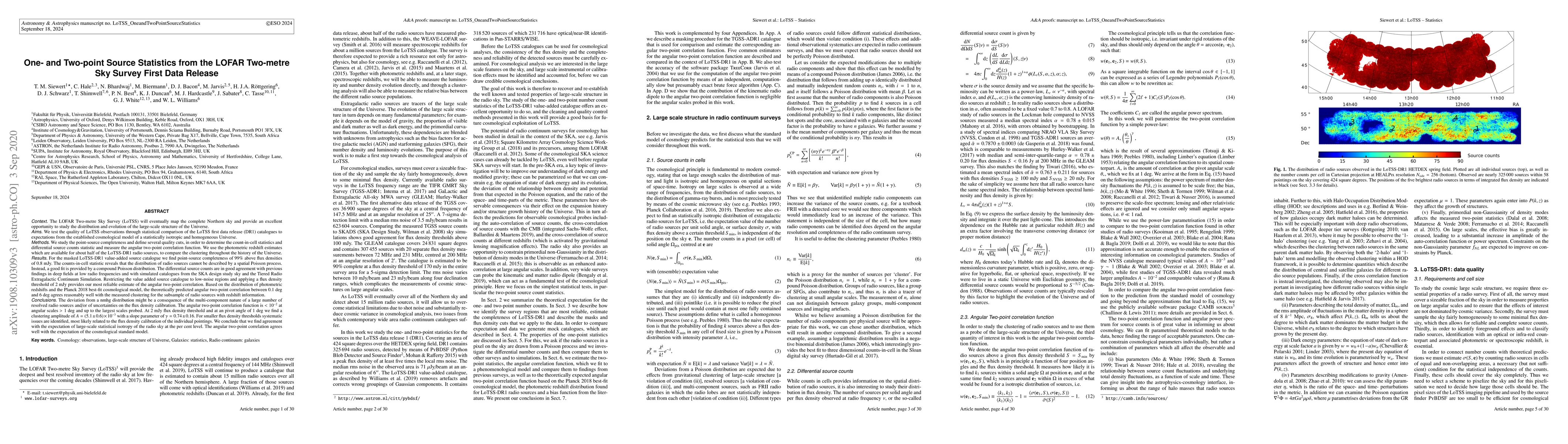 The LOFAR Two-metre Sky Survey provides 99% point-source completeness and measures large-scale structure of the Universe, with an angular two-point correlation of <10^-2 at scales >1 deg.