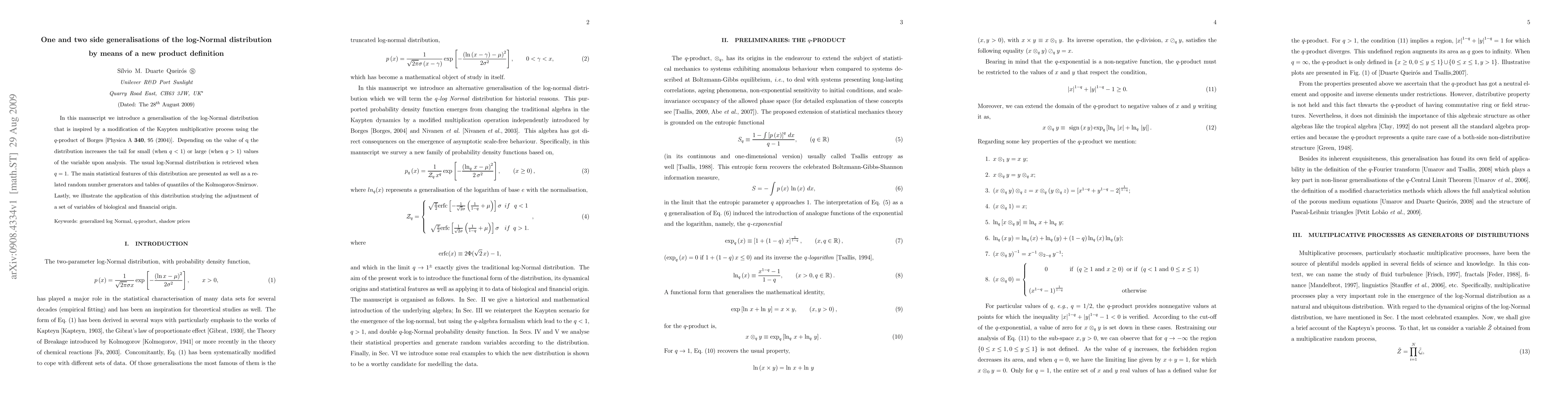 This paper introduces a new generalization of the log-Normal distribution based on the q-product rule, which affects tail behavior for different values of q. The findings include statistical features, random number generators, and applications in biology and finance.