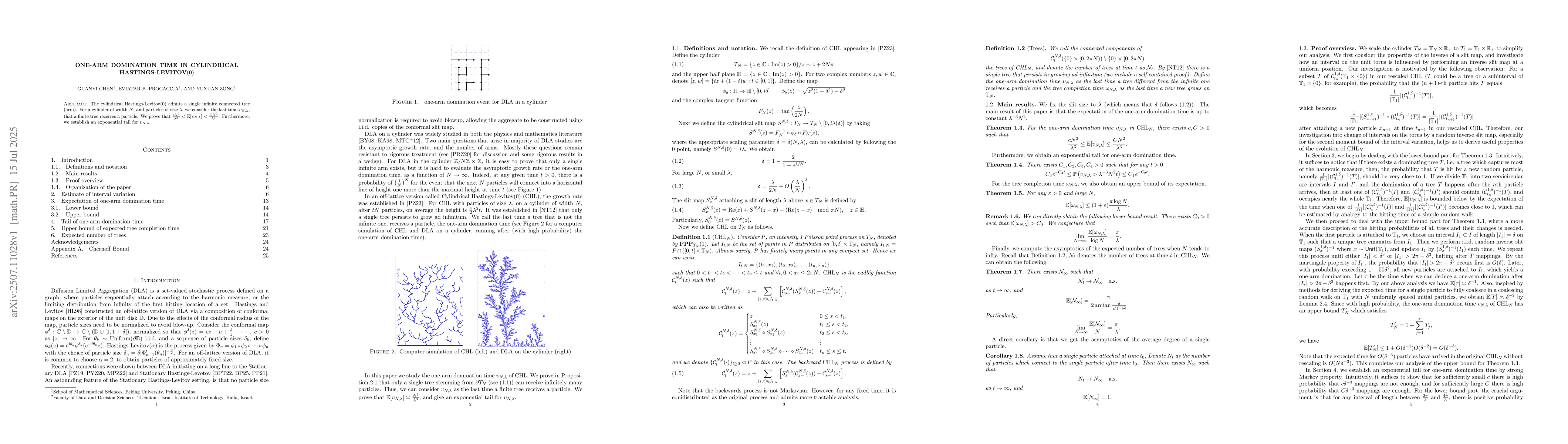 The cylindrical Hastings-Levitov$(0)$ admits a single infinite connected tree (arm). For a cylinder of width $N$, and particles of size $\lambda$, we consider the last time $\upsilon_{N, \lambda}$, that a finite tree receives a particle. We prove that $\frac{cN^2}{\lambda^3}<\mathbb{E}[\upsilon_{N, \lambda}]< \frac{CN^2}{\lambda^3}$. Furthermore, we establish an exponential tail for $\upsilon_{N, \lambda}$.