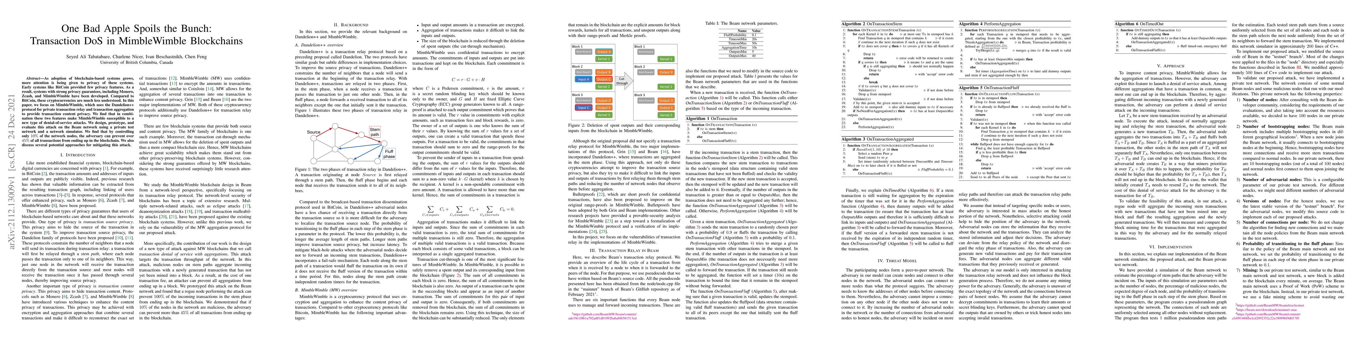 As adoption of blockchain-based systems grows, more attention is being given to privacy of these systems. Early systems like BitCoin provided few privacy features. As a result, systems with strong privacy guarantees, including Monero, Zcash, and MimbleWimble have been developed. Compared to BitCoin, these cryptocurrencies are much less understood. In this paper, we focus on MimbleWimble, which uses the Dandelion++ protocol for private transaction relay and transaction aggregation to provide transaction content privacy. We find that in combination these two features make MimbleWimble susceptible to a new type of denial-of-service attacks. We design, prototype, and evaluate this attack on the Beam network using a private test network and a network simulator. We find that by controlling only 10% of the network nodes, the adversary can prevent over 45% of all transactions from ending up in the blockchain. We also discuss several potential approaches for mitigating this attack.