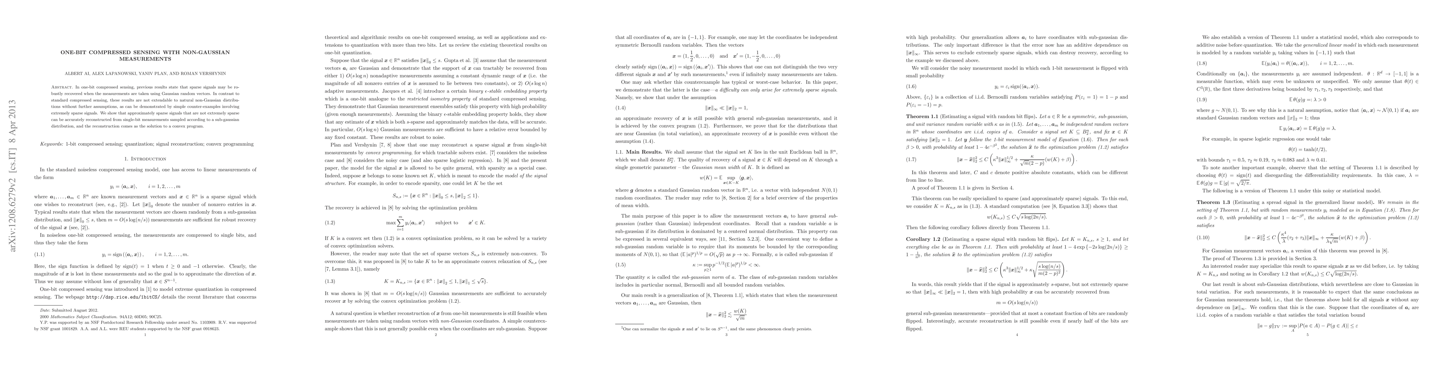 This paper demonstrates that approximately sparse signals can be reconstructed from single-bit measurements based on sub-Gaussian distributions, contrasting with previous Gaussian-based methods, and proposes a convex program for the reconstruction process.