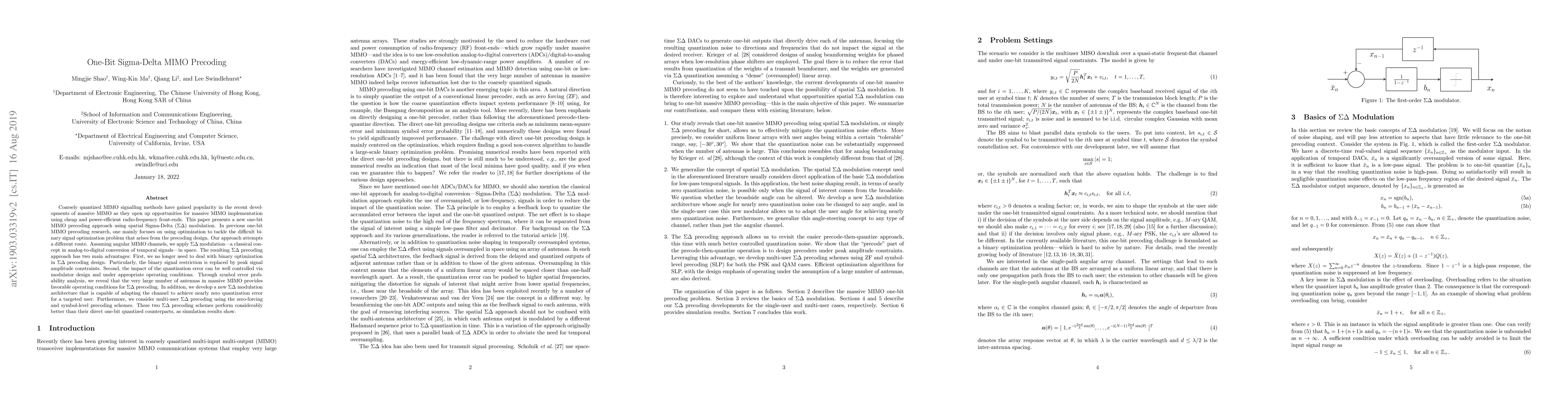 Coarsely quantized MIMO signalling methods have gained popularity in the recent developments of massive MIMO as they open up opportunities for massive MIMO implementation using cheap and power-efficient radio-frequency front-ends. This paper presents a new one-bit MIMO precoding approach using spatial Sigma-Delta ($\Sigma\Delta$) modulation. In previous one-bit MIMO precoding research, one mainly focuses on using optimization to tackle the difficult binary signal optimization problem that arises from the precoding design. Our approach attempts a different route. Assuming angular MIMO channels, we apply $\Sigma\Delta$ modulation---a classical concept in analog-to-digital conversion of temporal signals---in space. The resulting $\Sigma\Delta$ precoding approach has two main advantages: First, we no longer need to deal with binary optimization in $\Sigma\Delta$ precoding design. Particularly, the binary signal restriction is replaced by peak signal amplitude constraints. Second, the impact of the quantization error can be well controlled via modulator design and under appropriate operating conditions. Through symbol error probability analysis, we reveal that the very large number of antennas in massive MIMO provides favorable operating conditions for $\Sigma\Delta$ precoding. In addition, we develop a new $\Sigma\Delta$ modulation architecture that is capable of adapting the channel to achieve nearly zero quantization error for a targeted user. Furthermore, we consider multi-user $\Sigma\Delta$ precoding using the zero-forcing and symbol-level precoding schemes. These two $\Sigma\Delta$ precoding schemes perform considerably better than their direct one-bit quantized counterparts, as simulation results show.