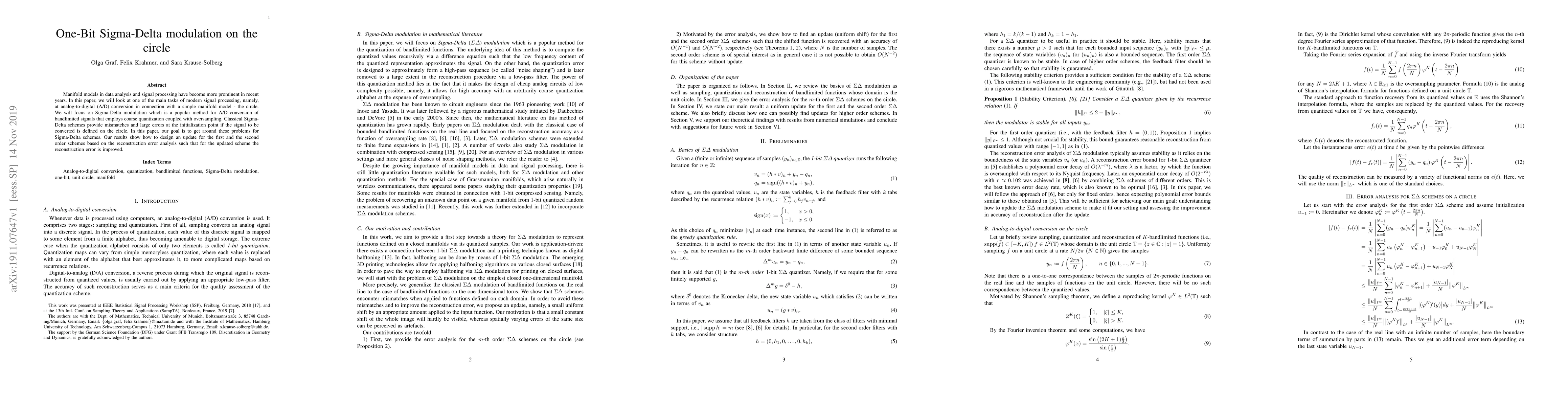 This paper investigates the application of Sigma-Delta modulation for analog-to-digital conversion on the circle manifold, addressing initialization errors in classical schemes. It proposes updated first and second-order Sigma-Delta schemes based on reconstruction error analysis to improve conversion accuracy.
