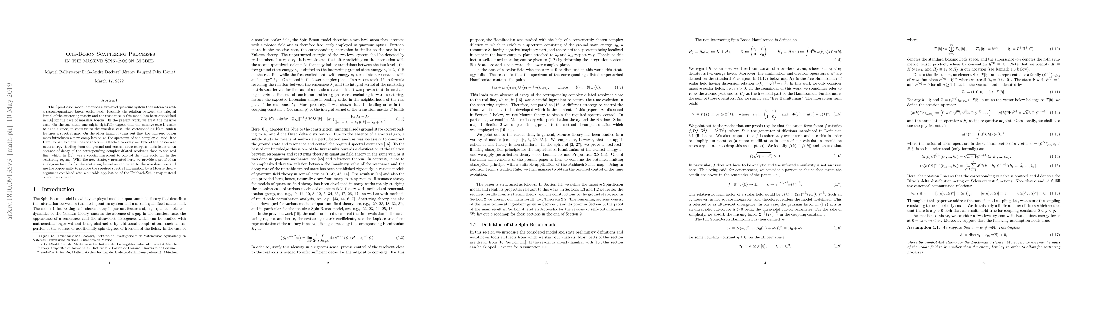 This research presents a proof for the scattering kernel in the massive Spin-Boson model, addressing the complexities introduced by non-zero boson mass. Unlike massless bosons, massive bosons cause spectral complications due to attached spectrum lines at multiples of the boson rest mass energy. The authors propose a new strategy using Mourre theory and Feshbach-Schur map to overcome these issues and provide necessary spectral information.
